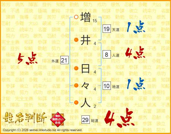増井日々人さんの総運は29画の4点!