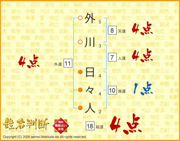 外川日々人さんの総運は18画の4点!