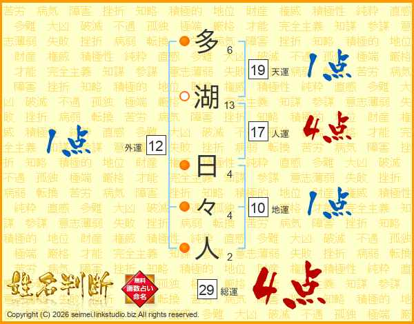 多湖日々人さんの総運は29画の4点!