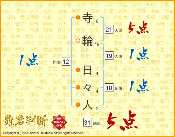 寺(6画)輪(15画) 日(4画)々(4画)人(2画)