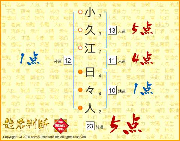小久江日々人さんの総運は23画の5点!