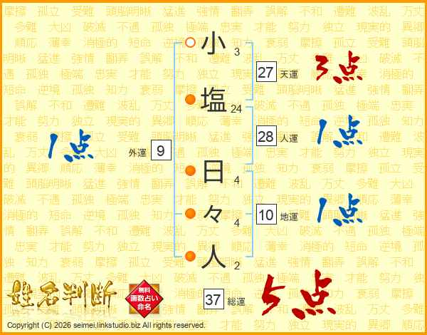小塩日々人さんの総運は37画の5点!