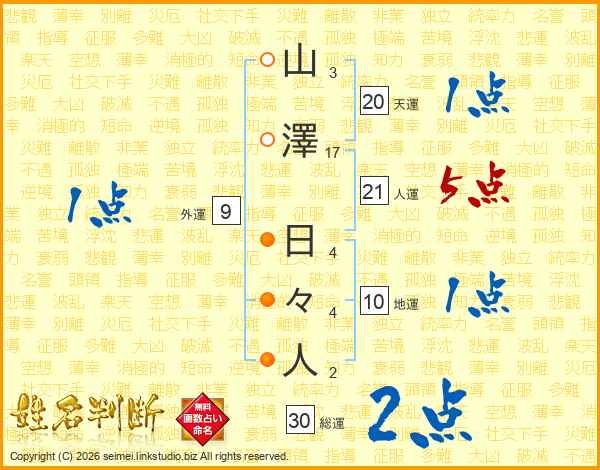 山澤日々人さんの人運は21画の5点!