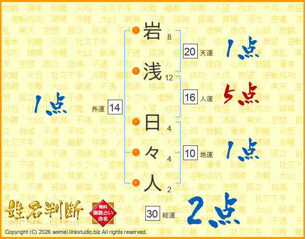 岩浅日々人さんの総運は30画の2点!