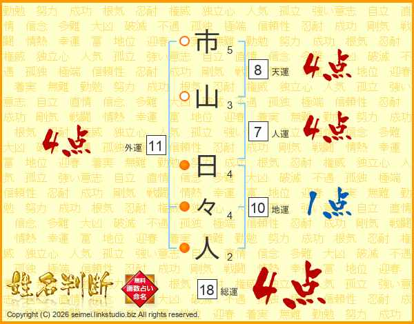 市山日々人さんの総運は18画の4点!