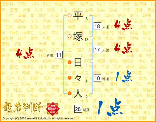 平塚日々人さんの人運は17画の4点!