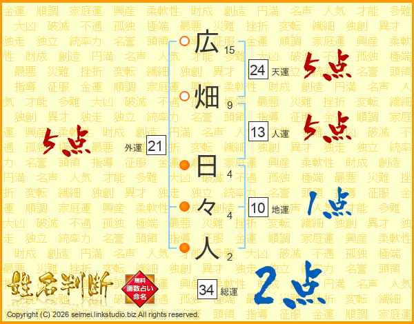 広畑日々人さんの総運は34画の2点!