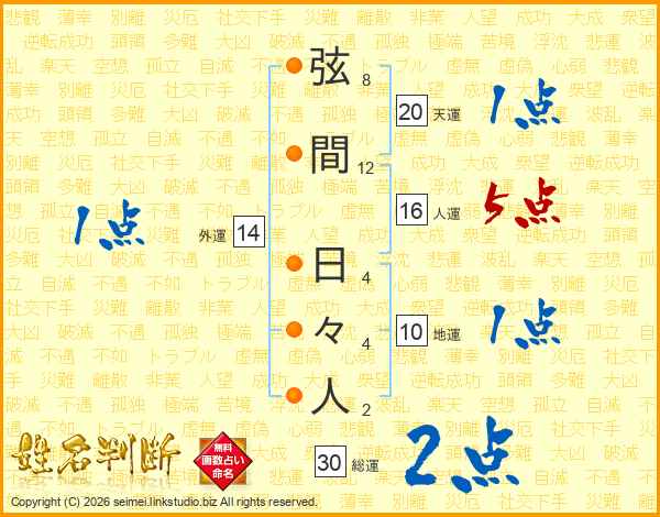 弦間日々人さんの天運は20画の1点!