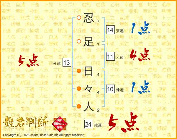 忍足日々人さんの総運は24画の5点!