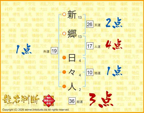 新郷日々人さんの天運は26画の2点!