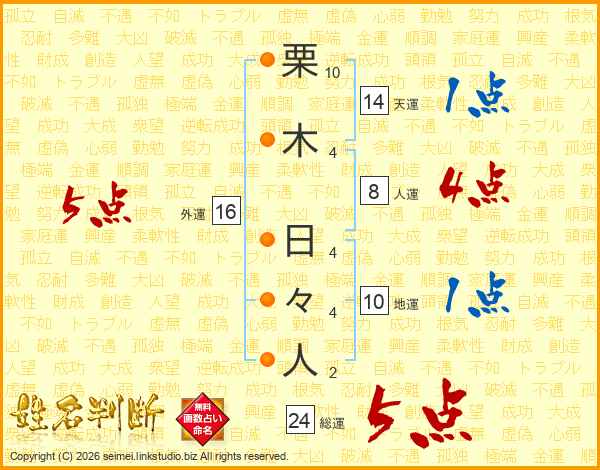 栗木日々人さんの総運は24画の5点!