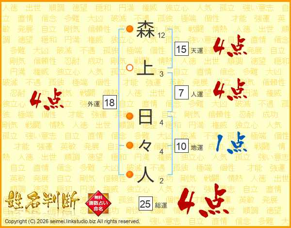 森上日々人さんの総運は25画の4点!