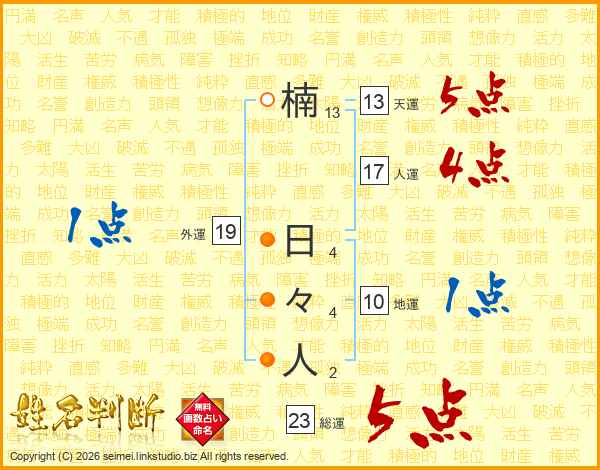 楠日々人さんの総運は23画の5点!