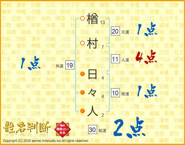 楢村日々人さんの人運は11画の4点!