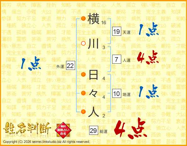 横川日々人さんの総運は29画の4点!