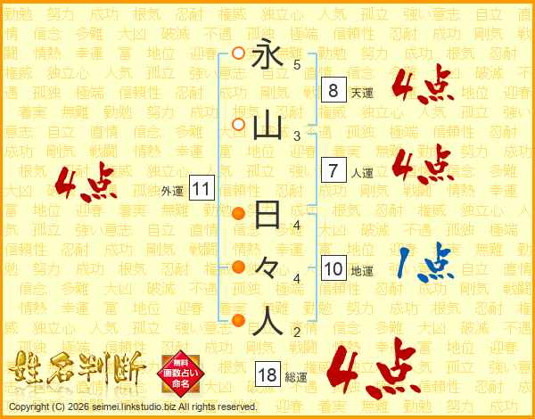永山日々人さんの総運は18画の4点!