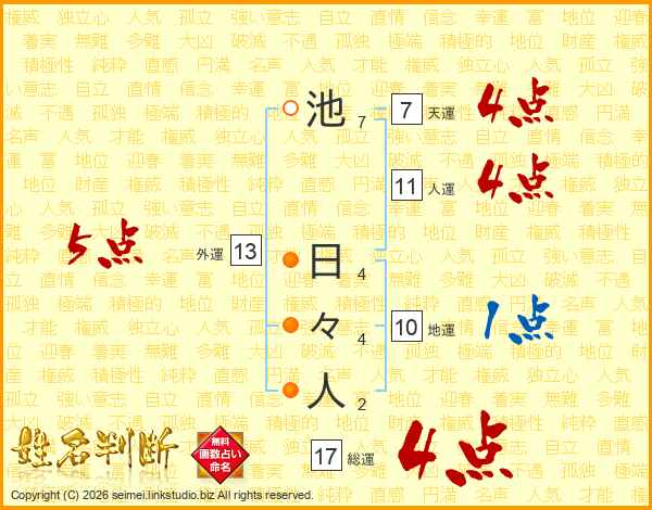 池日々人さんの総運は17画の4点!