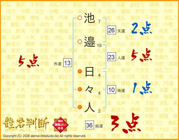 池邉日々人さんの外運は13画の5点!