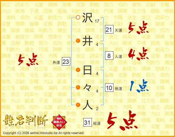 沢井日々人さんの総運は31画の5点!