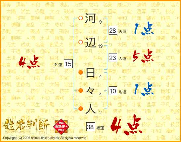 河(9画)辺(19画) 日(4画)々(4画)人(2画)