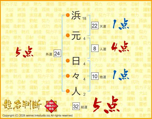 浜(18画)元(4画) 日(4画)々(4画)人(2画)