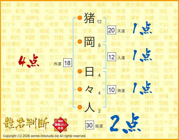 猪岡日々人さんの総運は30画の2点!