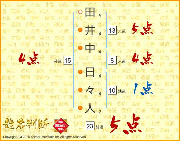 田井中日々人さんの総運は23画の5点!