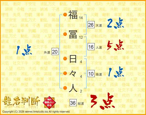 福(14画)冨(12画) 日(4画)々(4画)人(2画)
