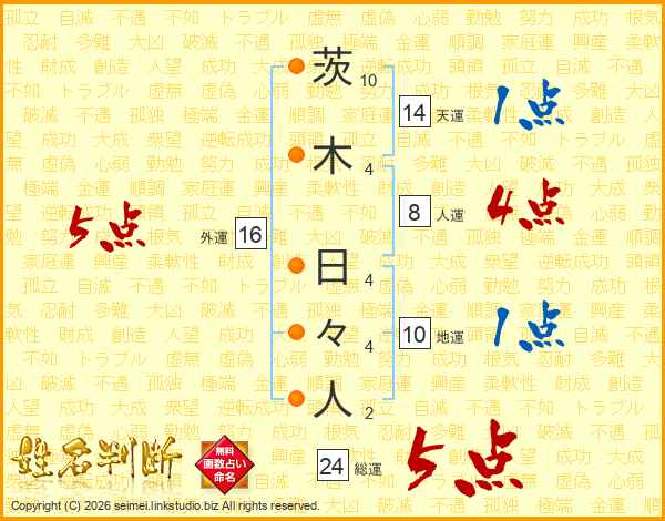茨木日々人さんの天運は14画の1点!