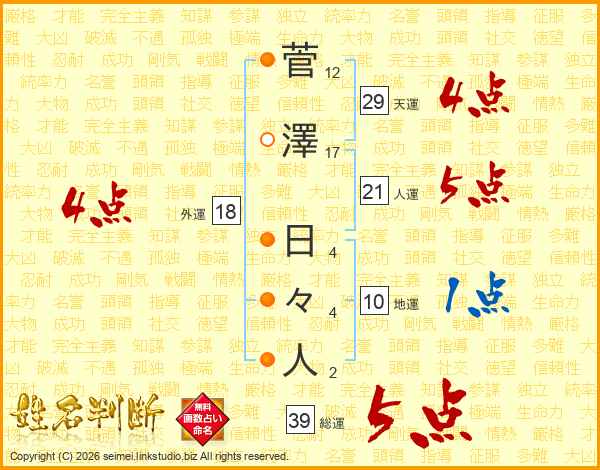 菅(12画)澤(17画) 日(4画)々(4画)人(2画)