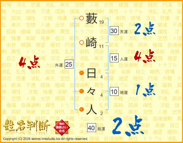 藪崎日々人さんの総運は40画の2点!