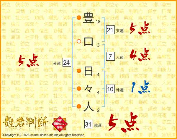 豊口日々人さんの総運は31画の5点!