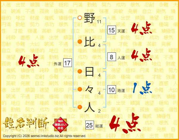 野比日々人さんの総運は25画の4点!