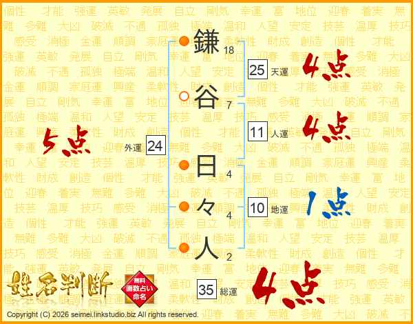 鎌谷日々人さんの総運は35画の4点!