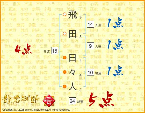 飛田日々人さんの総運は24画の5点!