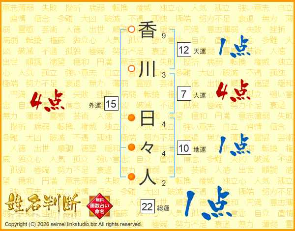 香川日々人さんの総運は22画の1点!