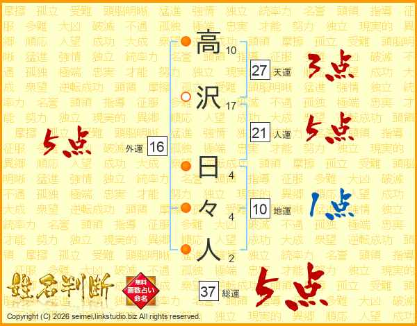 高(10画)沢(17画) 日(4画)々(4画)人(2画)