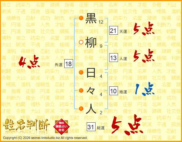 黒柳日々人さんの総運は31画の5点!