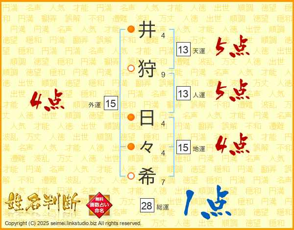 井狩日々希さんの総運は28画の1点!
