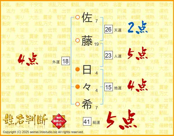 佐(7画)藤(19画) 日(4画)々(4画)希(7画)