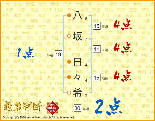 八(8画)坂(7画) 日(4画)々(4画)希(7画)
