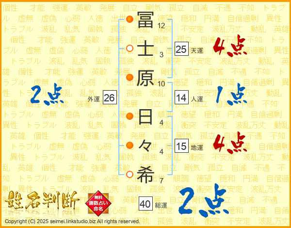 冨(12画)士(3画)原(10画) 日(4画)々(4画)希(7画)