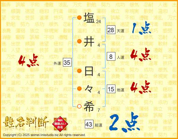 塩(24画)井(4画) 日(4画)々(4画)希(7画)