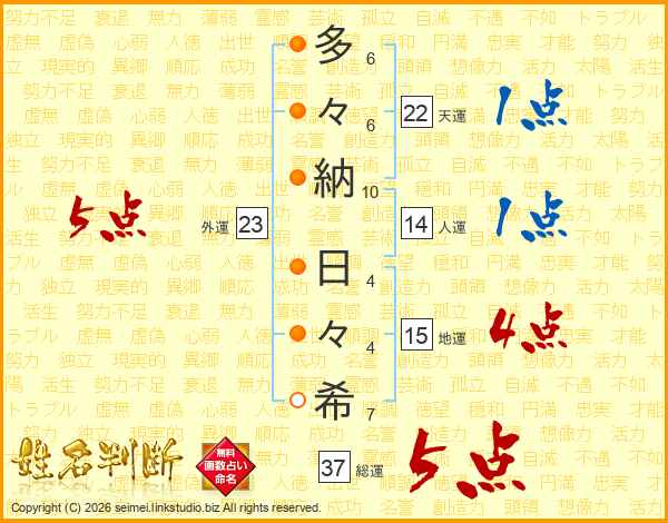 多(6画)々(6画)納(10画) 日(4画)々(4画)希(7画)