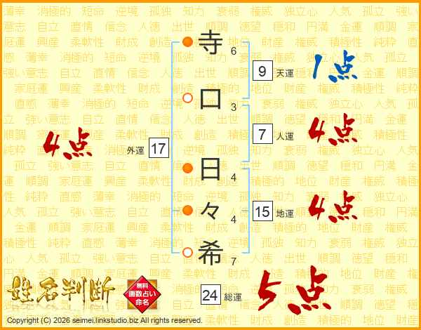 寺口日々希さんの総運は24画の5点!
