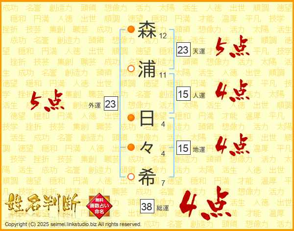 森(12画)浦(11画) 日(4画)々(4画)希(7画)