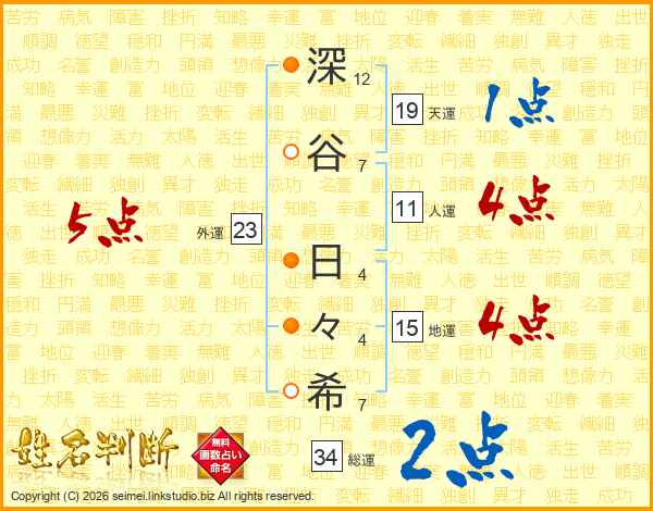 深谷日々希さんの総運は34画の2点!