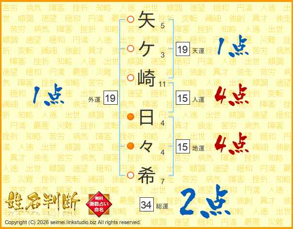 矢(5画)ケ(3画)崎(11画) 日(4画)々(4画)希(7画)