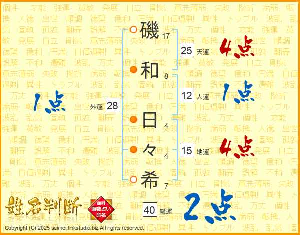 磯和日々希さんの総運は40画の2点!