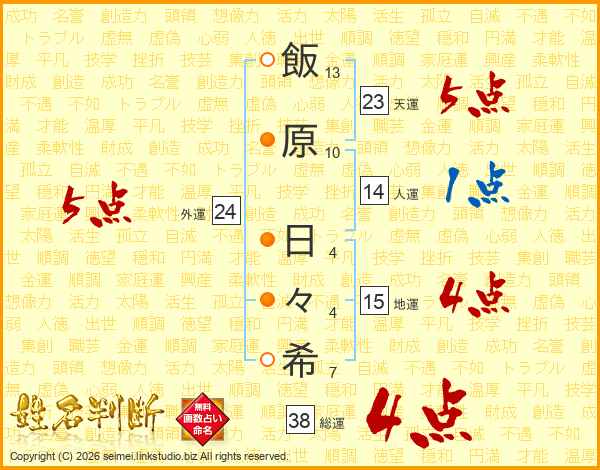 飯原日々希さんの総運は38画の4点!